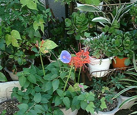 | 夏中咲いてくれていた、朝顔、ベゴニア、日々草、野ボタン、小さな額アジサイ | ||||