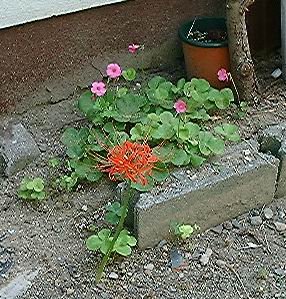 曼珠沙華(彼岸花)が散歩途中の玄関先に咲いていました。 |