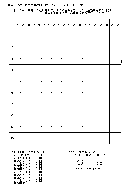 kouka.exe(自己解凍ファイル) 硬貨裏表実験の用紙原版、48人のデータ、48000回の処理プログラム がダウンロードできます。ウィルスチェックはしてあります。